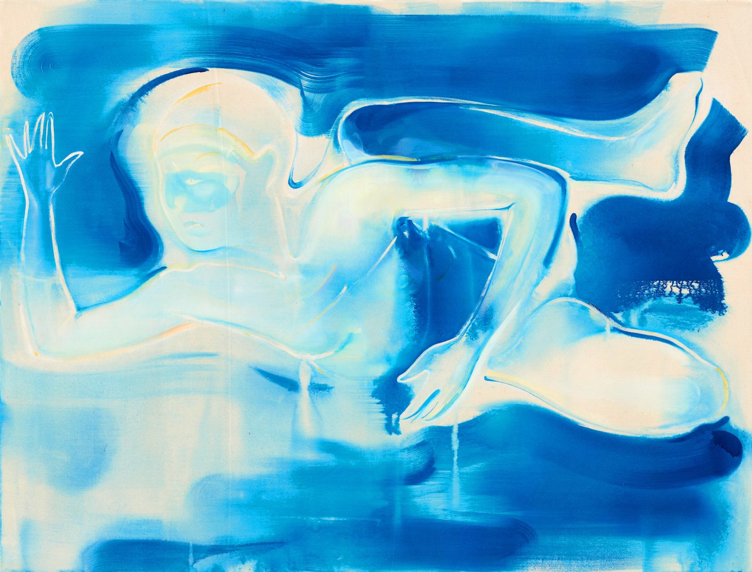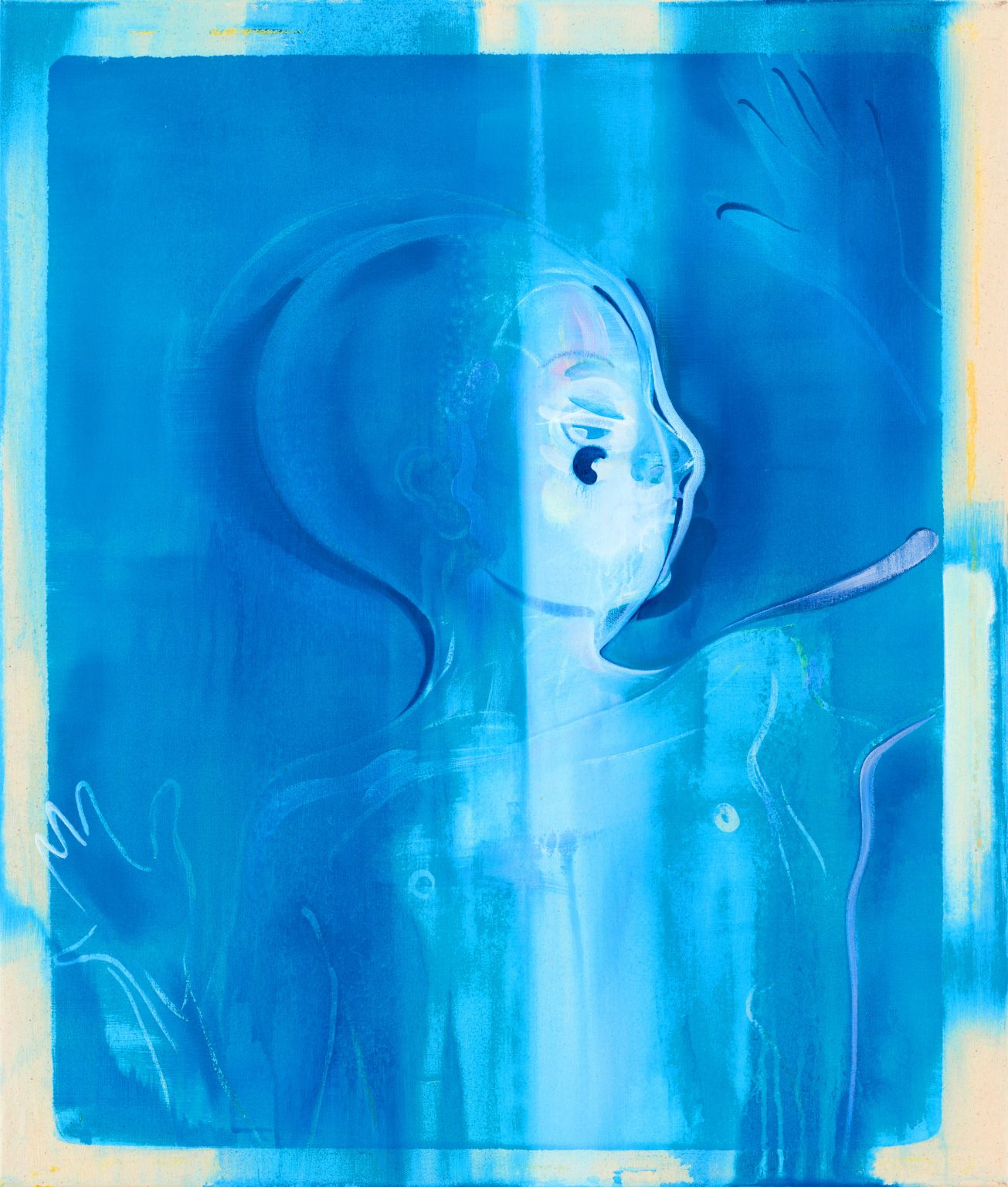 Study Of My Human Body Blue Screen), acrylic on canvas, 130×170 cm, 51.1×66.9 “, 2016